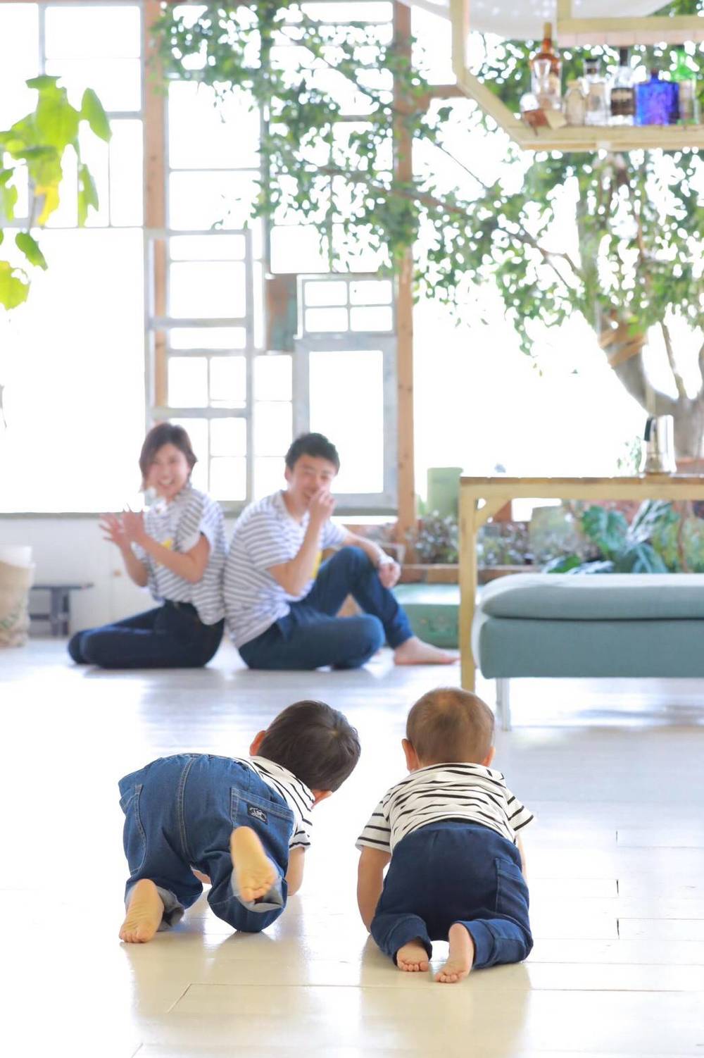 息子達はすっかり懐いて撮影中も普段通りのわんぱく坊や。