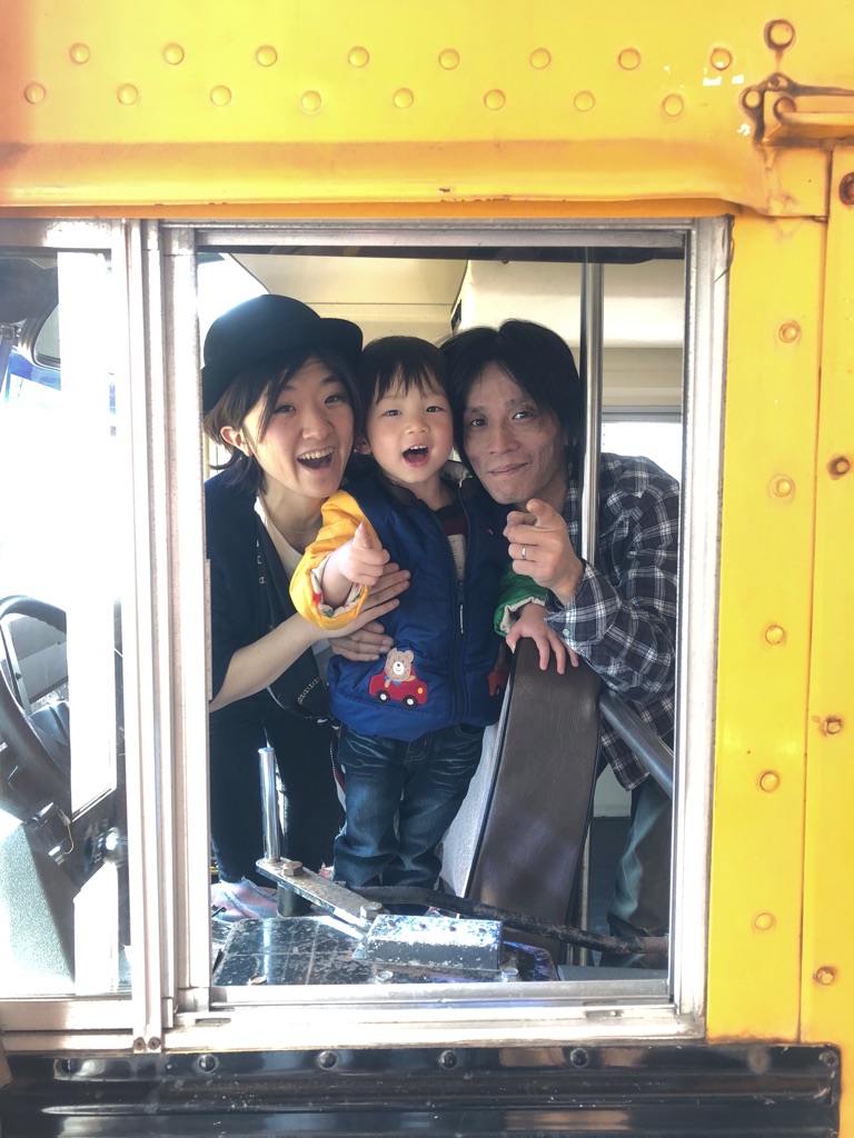 前日に「黄色いバスのとこに写真撮りに行くよー」と告げると、「やったぁ!」とワクワクしていました。