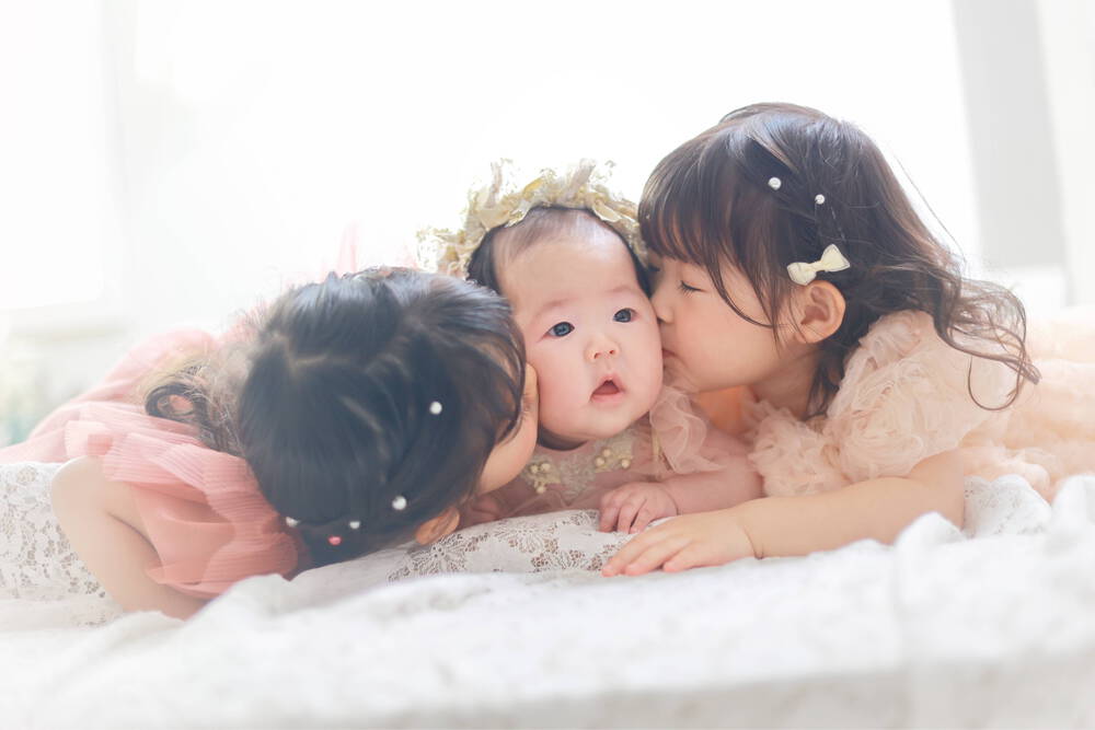 またお姉ちゃんたちも場所見知りと人見知りがあり、親から離れられない状態でしたが、気づいたら親から離れてスタッフの方と楽しく遊んでいて驚きました!でも撮影となるとまた話は別のようで、イヤイヤしていましたが、色んな遊びをしながら子供たちが楽しく撮影できるように配慮してもらえました。