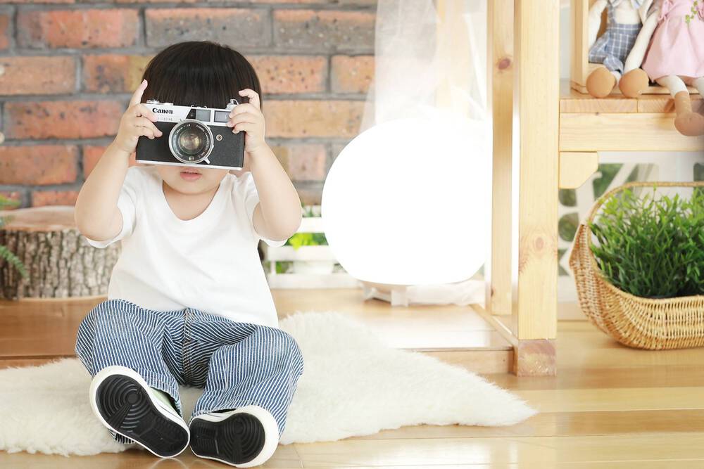 息子生まれて始めての写真館での撮影でした最初は緊張して硬い表情になってましたが、