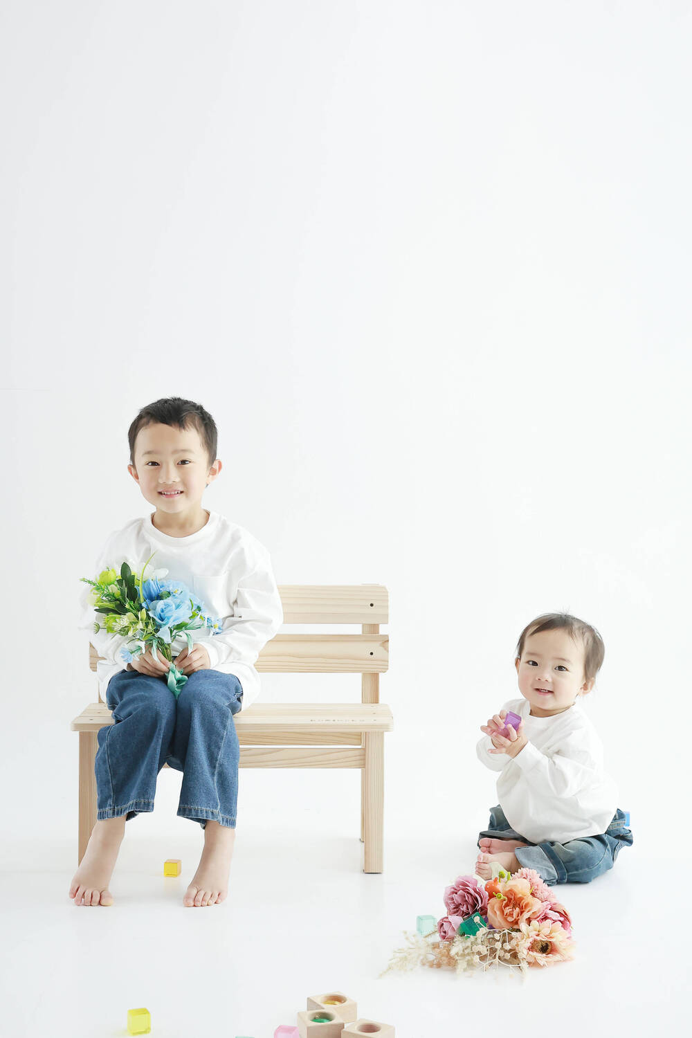 下の子は初めてのフォトスタジオでしたが、場所見知りもせず、リラックスして撮影出来ていました