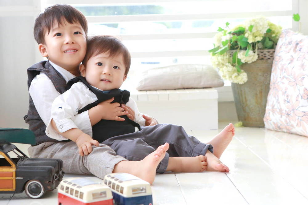8月と9月生まれの誕生日記念に初めて写真撮影に来ました 最初3歳の弟は初めての場所や雰囲気になじめず泣きそうになってし...