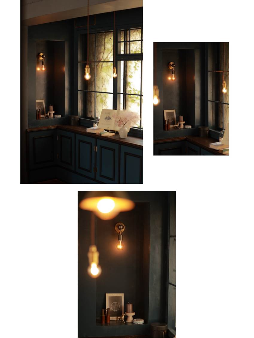 落ち着いた色味の空間の中にポッと垂れて光る電球。