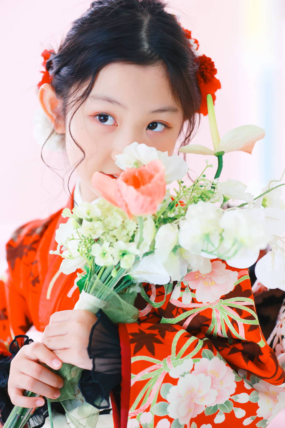 そんな彼女に花束を持ってもらい、