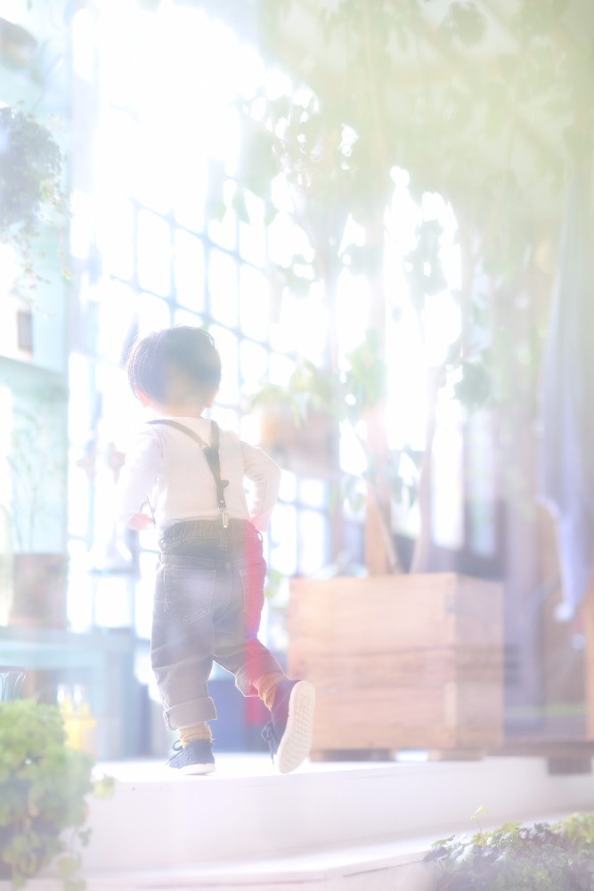 その光はインテリアに当たり、男の子に当たり、カメラ側のガラスにもあたっていたので、ガラスを被写体とカメラの間に挟みこむことでちょうどよく綺麗なボケみをだすことができました。
