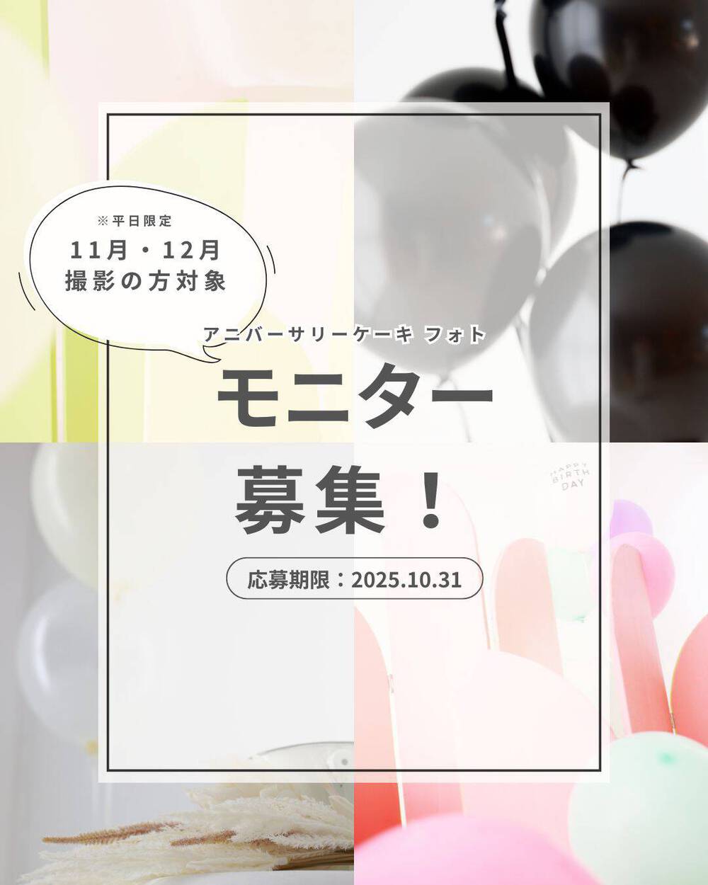 期間内に撮影し、当日スタッフにInstagramのクーポン画像をご提示いただいた方のみ対象とさせて頂きます。