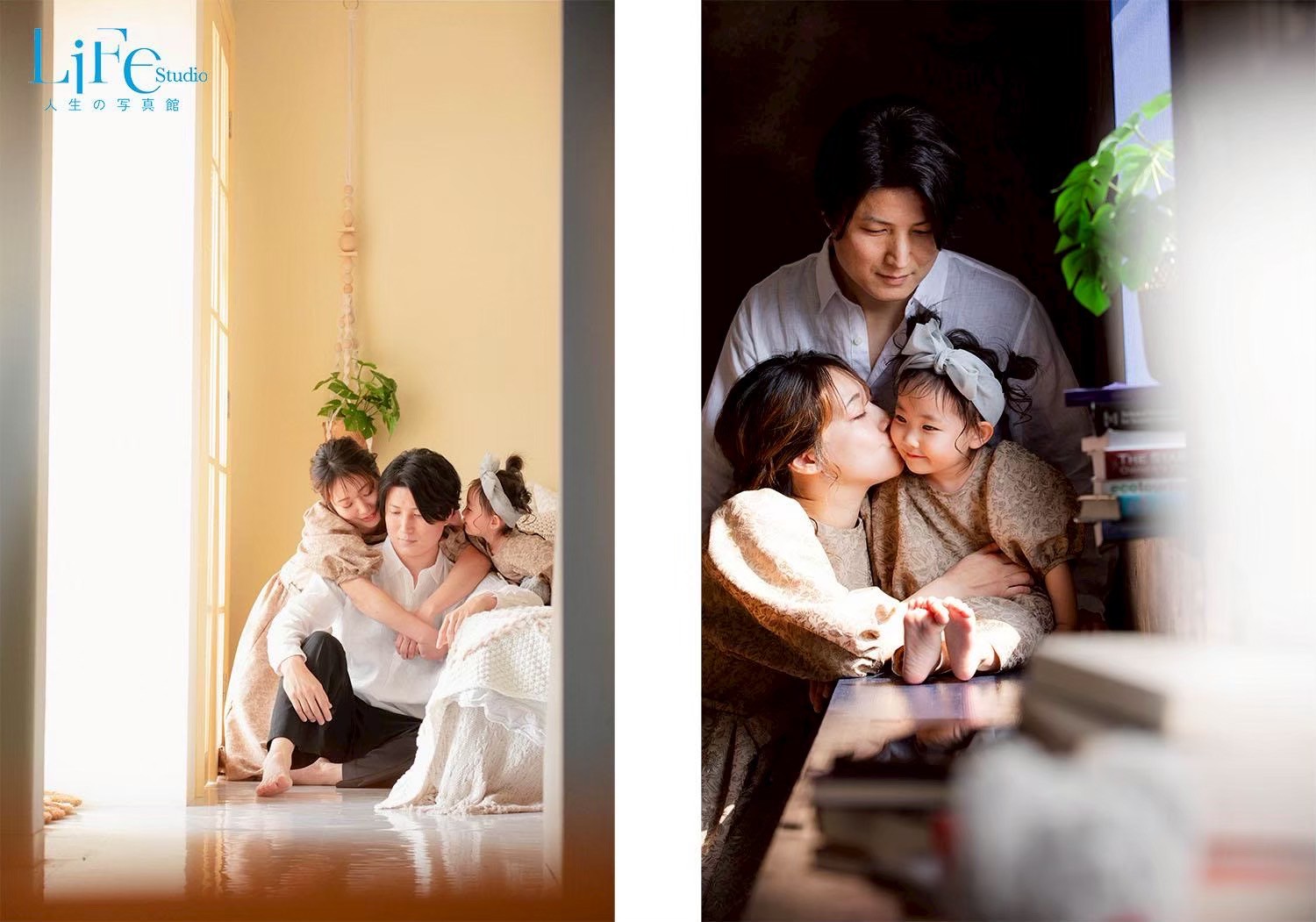 光がやさしく差し込む落ち着いた空間で、赤ちゃんからキッズまで(お宮参り・100日・ハーフバースデー・1歳誕生日〜キッズ期)の「今」を自然に残すフォトプランです。