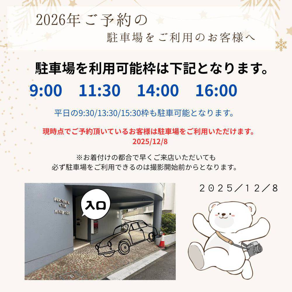 ※上記の火曜日の2日間はBaby & Kids,入学・卒業,Maternity,Profileのみの撮影となります。