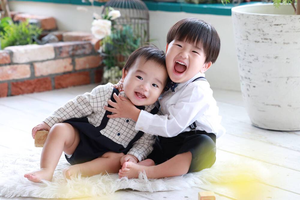 兄弟写真の時はお兄ちゃんが二人で積み木で遊んだりしながら楽しく撮影しました。
