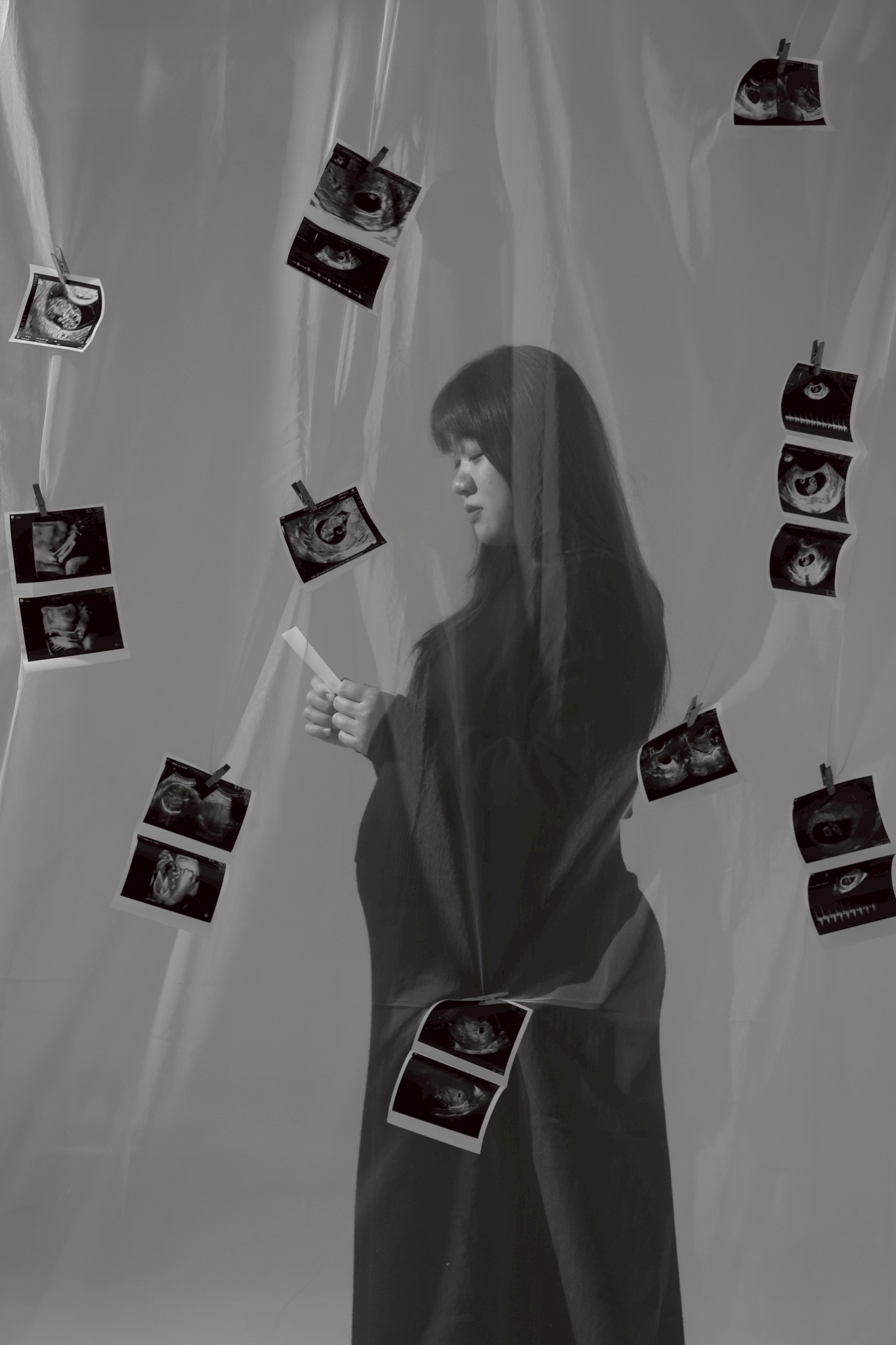 左側にある写真はエコー写真の中でもお気に入りです。顔を一番綺麗に見せてくれた時です。笑