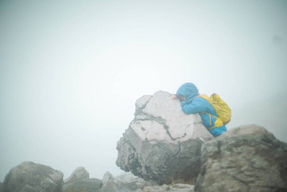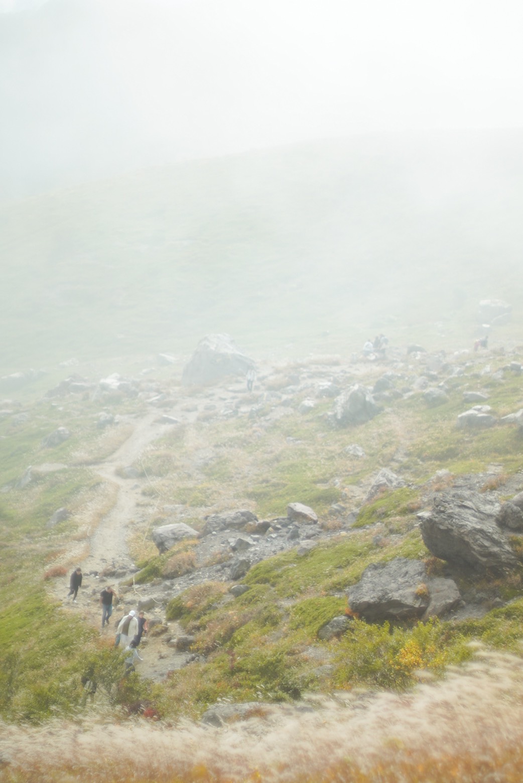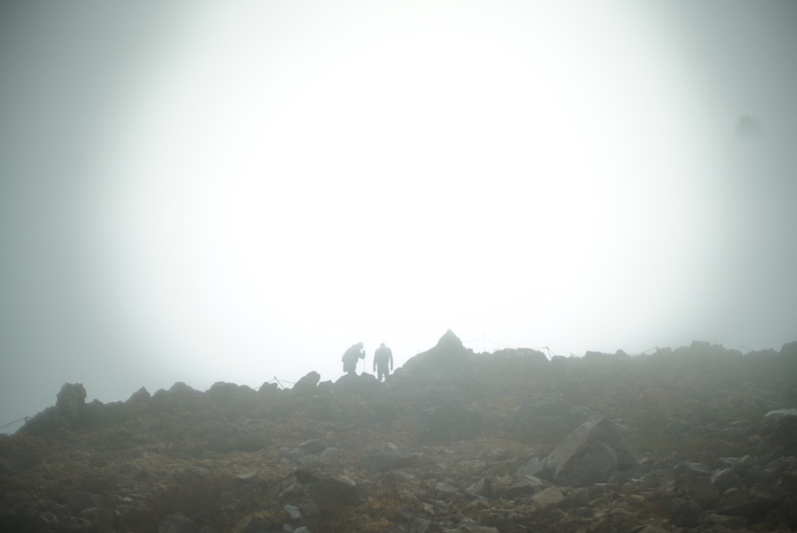 小雨と強風がすごく、予定していた下山ルートは行かず