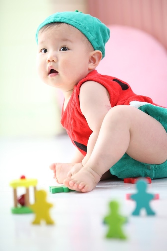 まだ六ヶ月くらいで、先生が着付けとメイクをしている間は、メイクルームでバンボにちょこんと座ってましたね。そして大体泣いていました笑