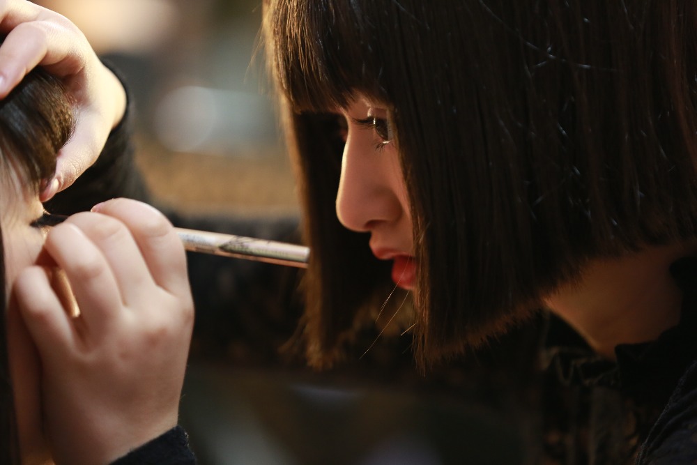 そこにいる彼女はまるでメイクアップアーティストのような出立ち。
