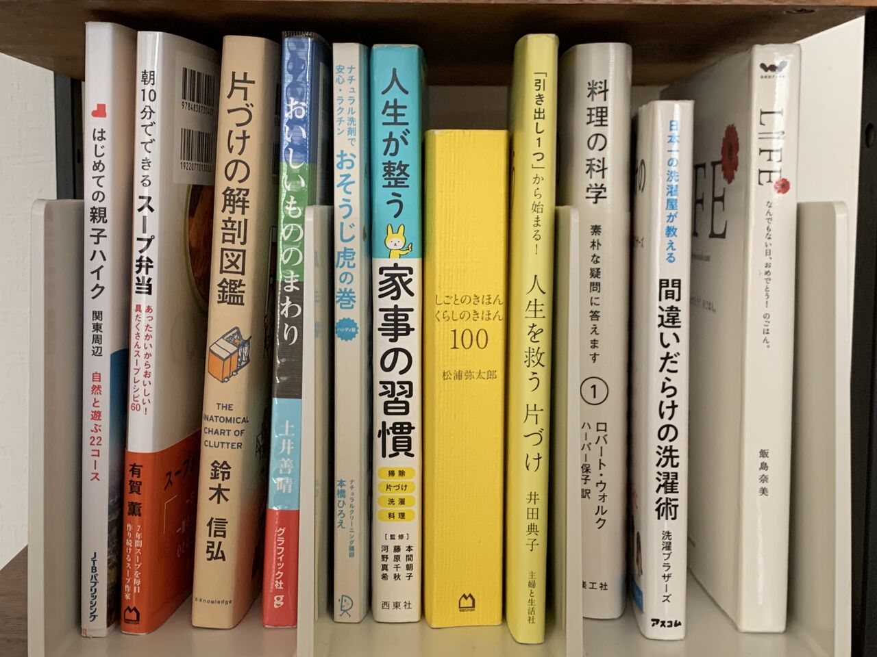 写真やデザインばかりが並んでいた本棚も今では、家事本ばかり…