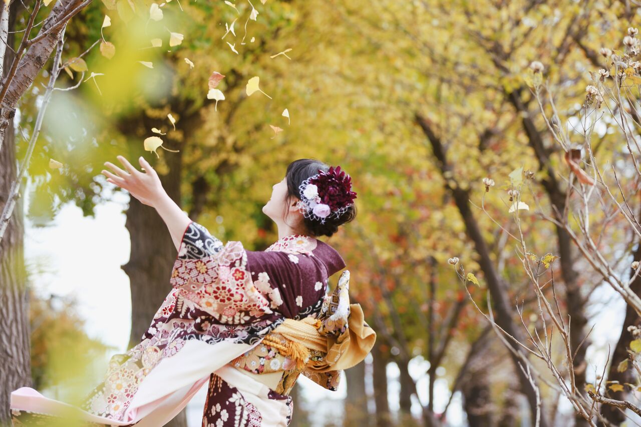 美しい銀杏黄葉の中で、二十歳のみなぎる若々しさをここぞとばかりに表明したい!