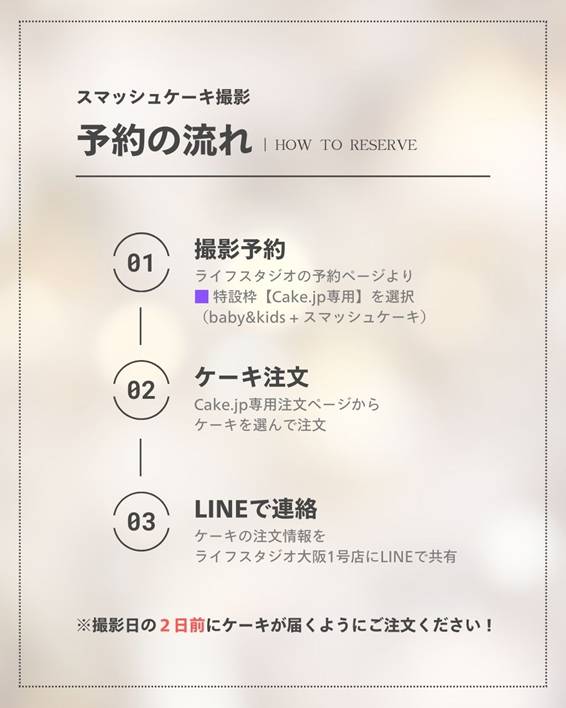 ■撮影ご予約・スマッシュケーキのご注文の流れについて