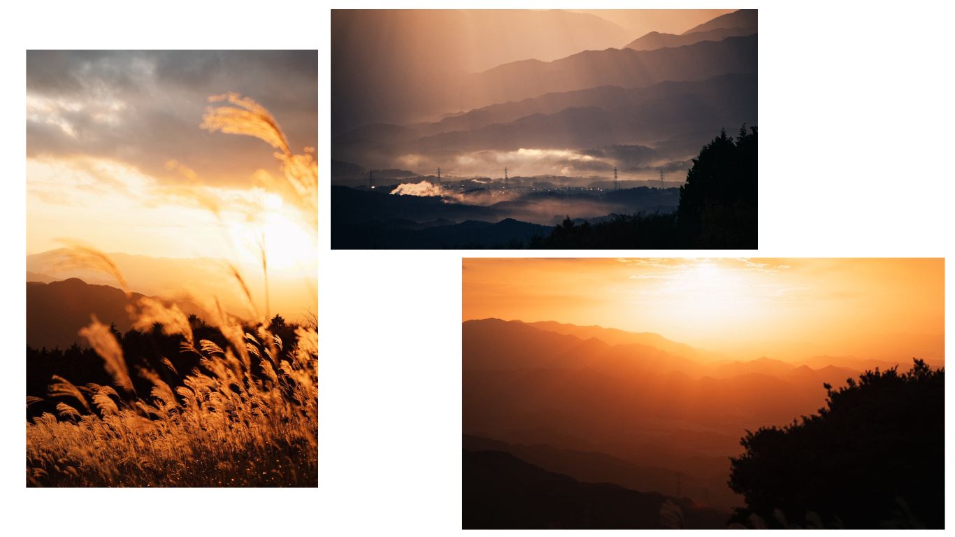 燃えるように濃いオレンジの夕日も、雲海に差し込む梯子のような光も、とってもきれいでした。