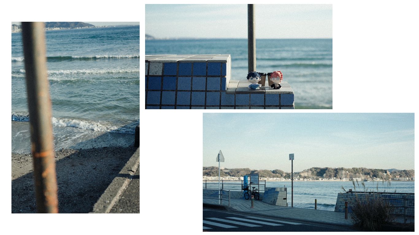 海辺の広場で、手すりに駆け寄る…… というところまで再現してきました。