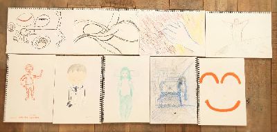 ライフスタジオに遊びに来てくれるお友達たちは思い思いに楽しい絵を残していってくれます。 好きな魚、