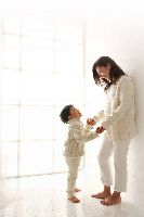 白でふんわりつつみこまれた二人笑顔の綺麗なママと元気いっぱいの僕!かけがえのない時をどのように刻んで