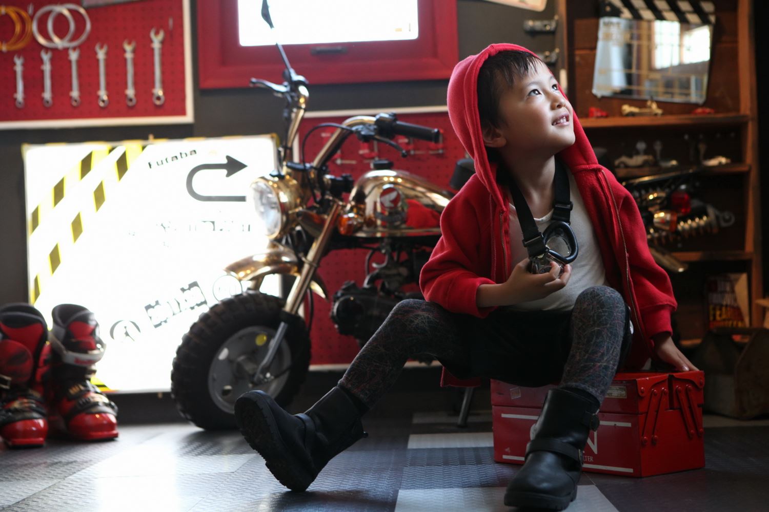 車のおもちゃ大好きな男の子^^ バイクの部屋の棚に車のおもちゃを見つけるや否や夢中です^^