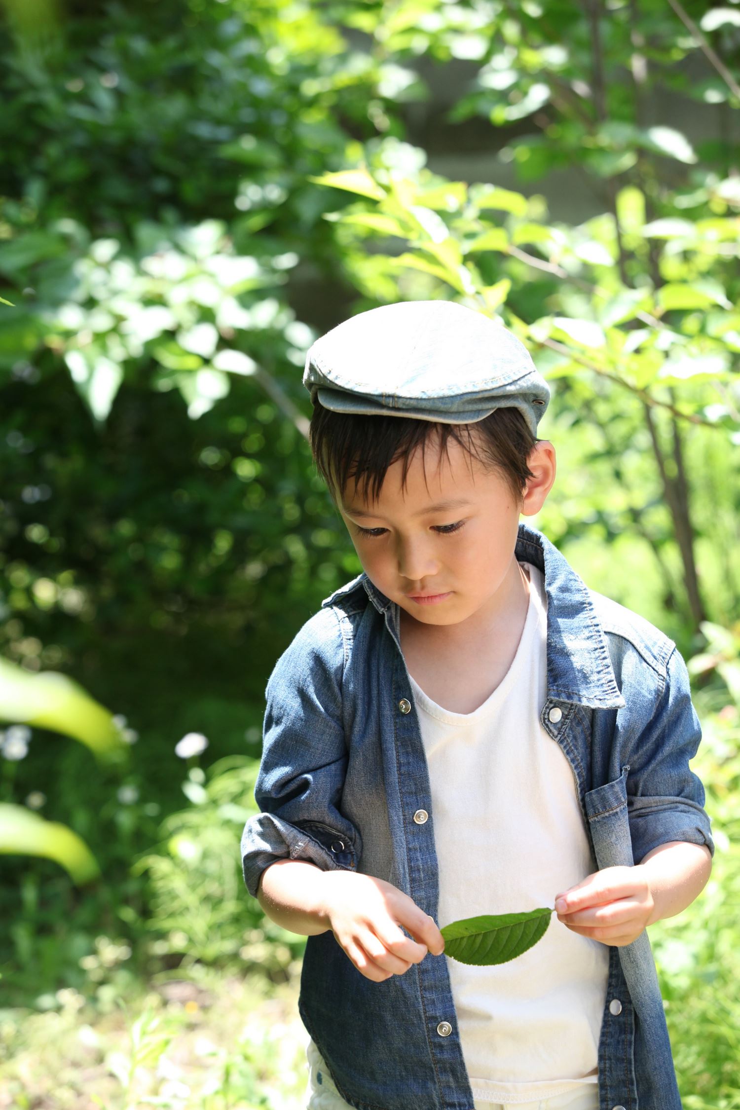 元気な女の子が森の中へ^^ 葉っぱが太陽光に透けてきれいだねww
