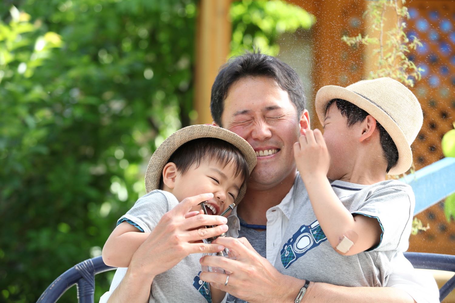 パパとやんちゃな兄弟2人^^ お外で水のかけあいだーーーーww 最近暑い日々が続くので気