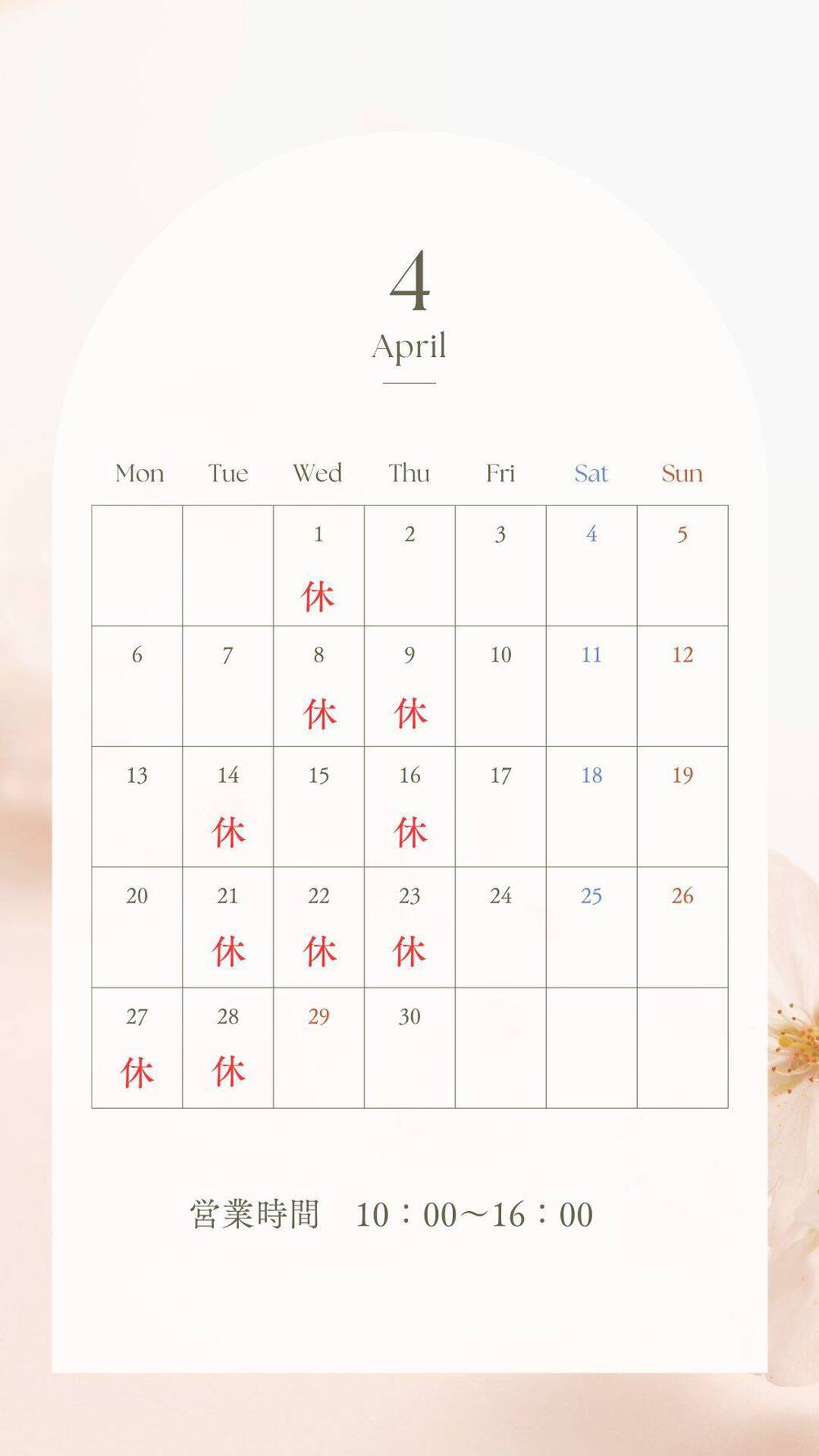 【2026】4月定休日