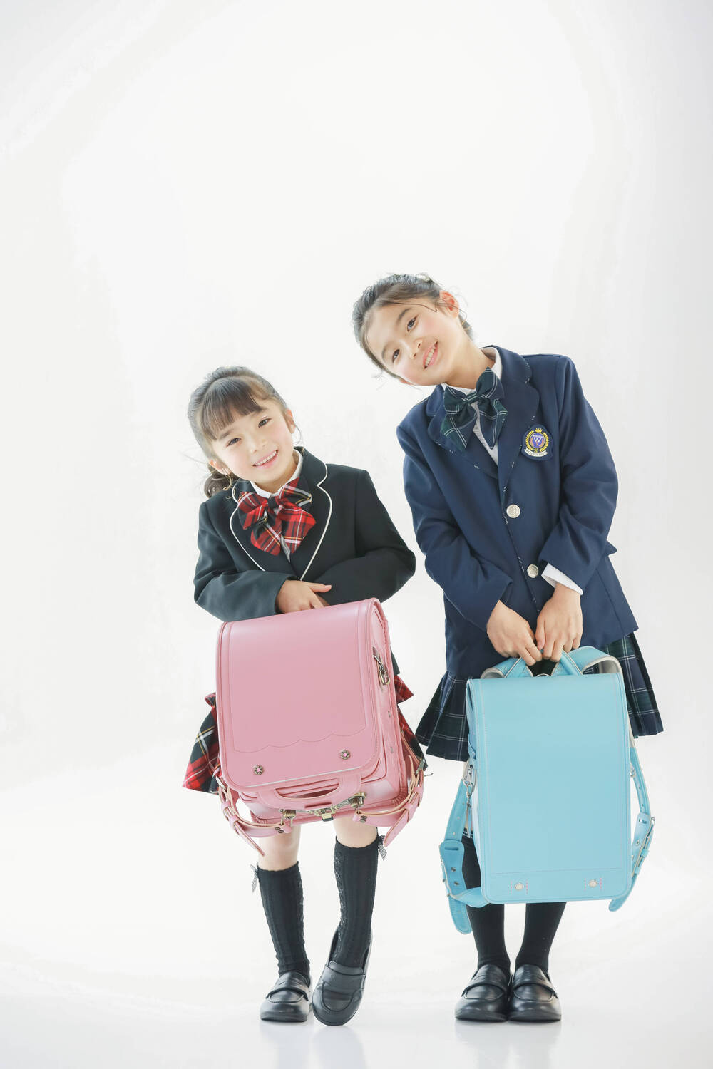 ぴかぴかの鞄とお洋服で、新しいスタートをきる節目のとき。少し緊張した顔だちが成長を感じさせてくれます。