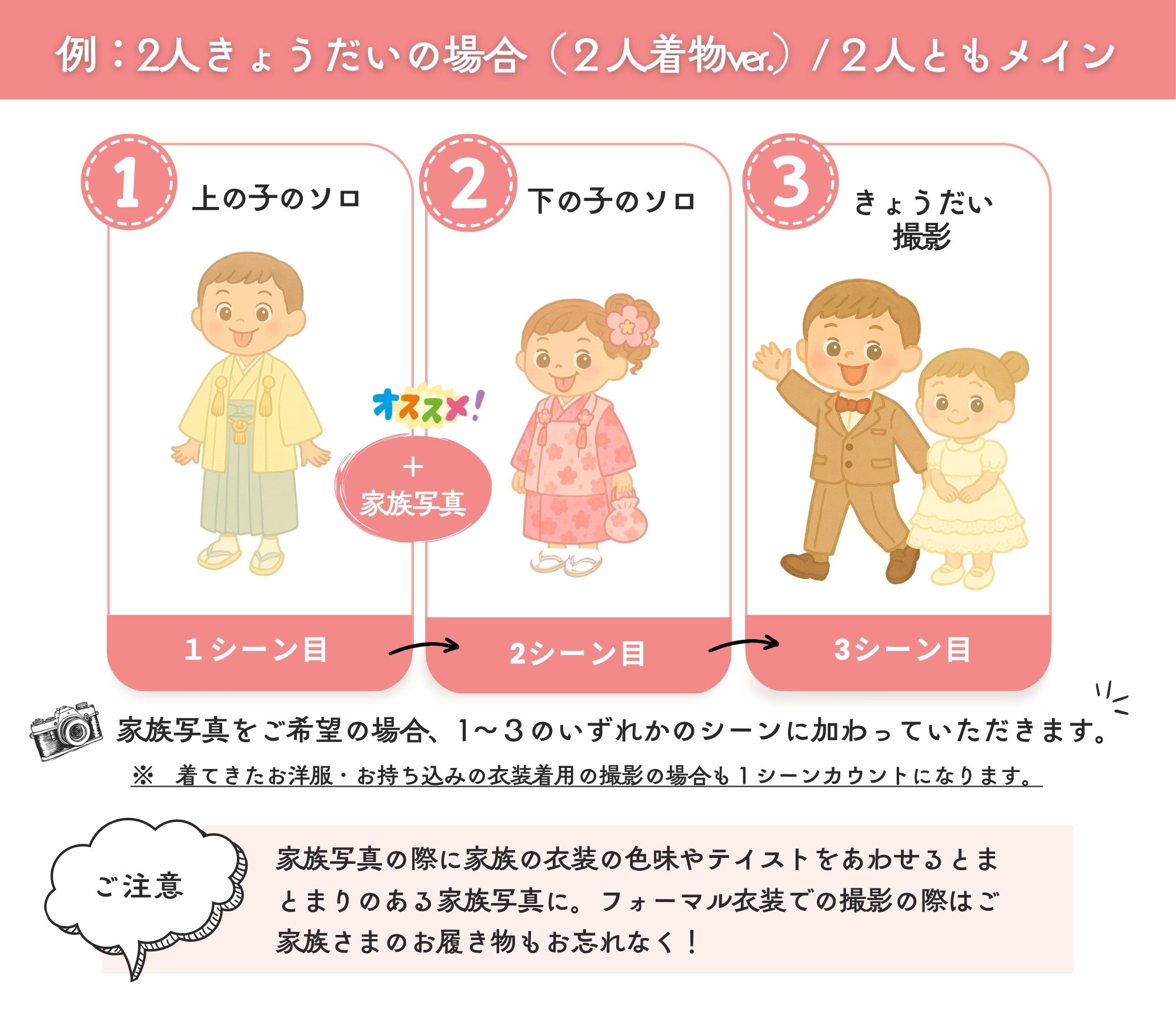 ②家族撮影ときょうだい撮影は1シーンのみとなります。