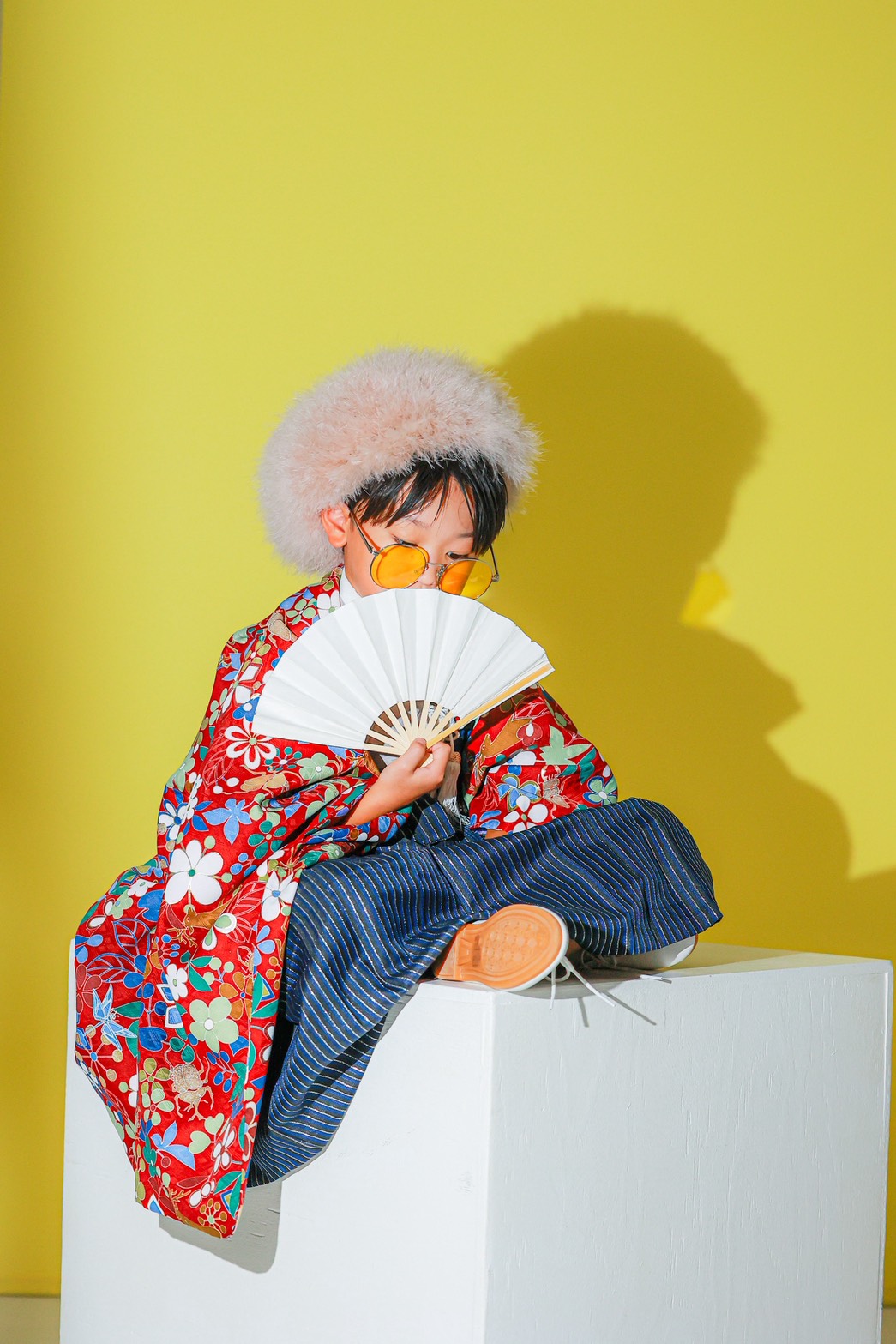 彼には赤い着物を着ていただき、個性派で強めなコーディネートを組みました!