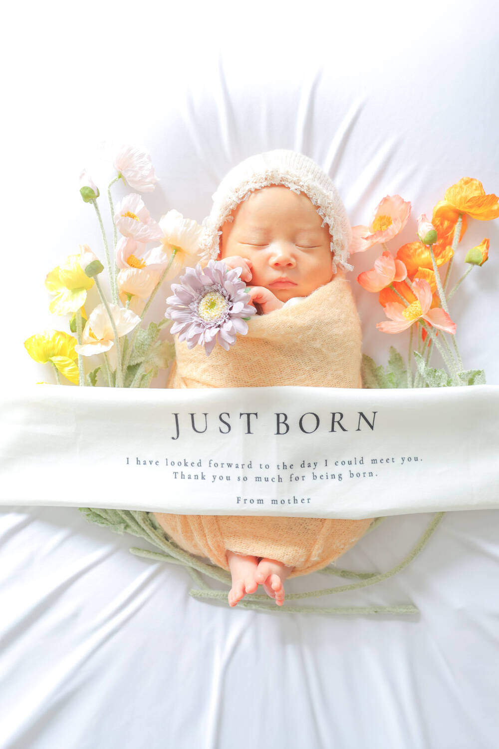 お花に囲まれてすやすや眠る赤ちゃんを見ていると、