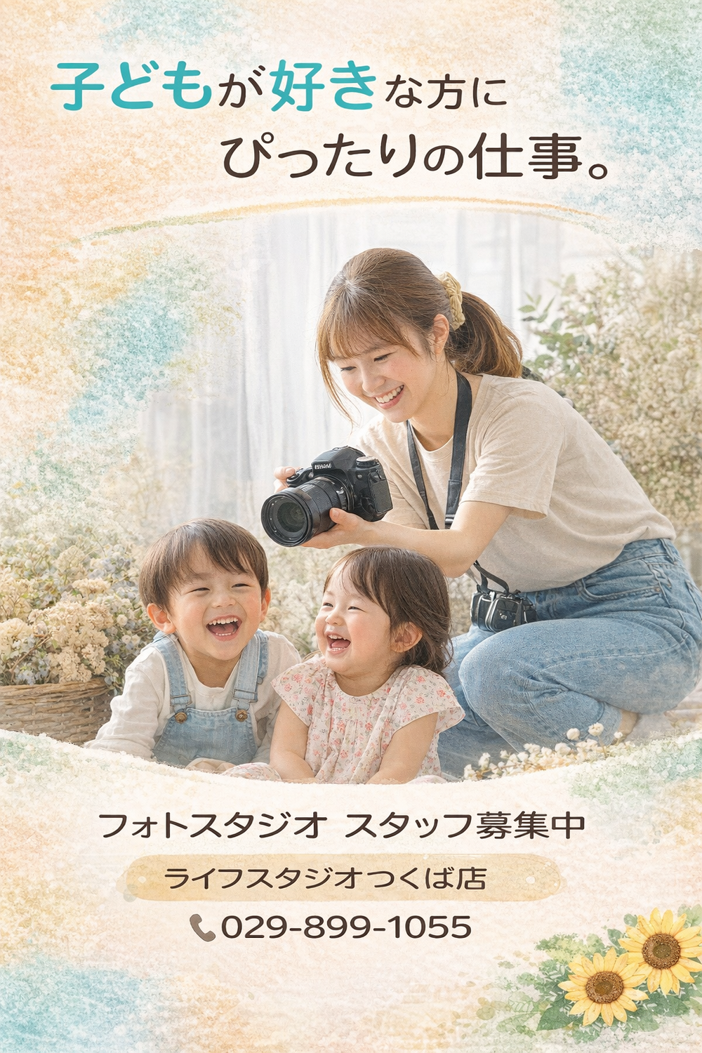 フォトグラファーと一緒に撮影を進めながら、子どもたちの自然な笑顔や表情を引き出すお仕事です。