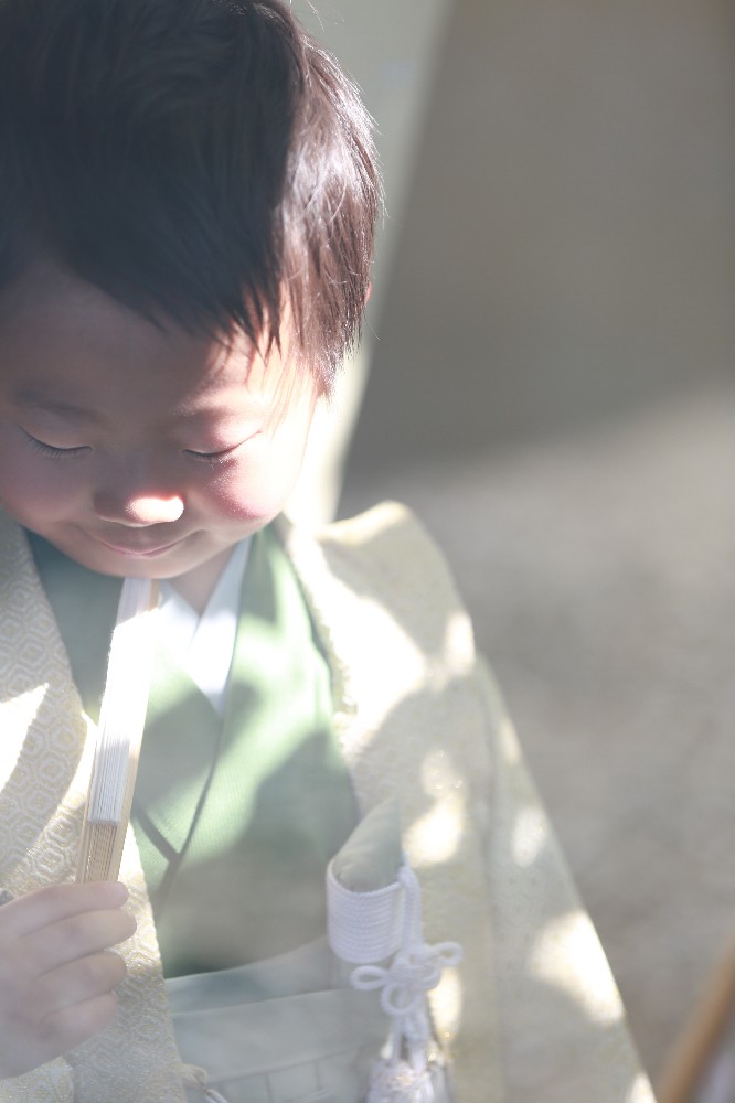 なれない着物を着て、無機質な白ホリという空間での撮影は、こどもにとって大きく緊張する要因ともなると思う。