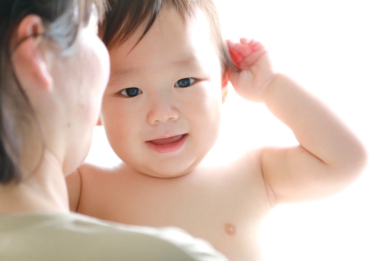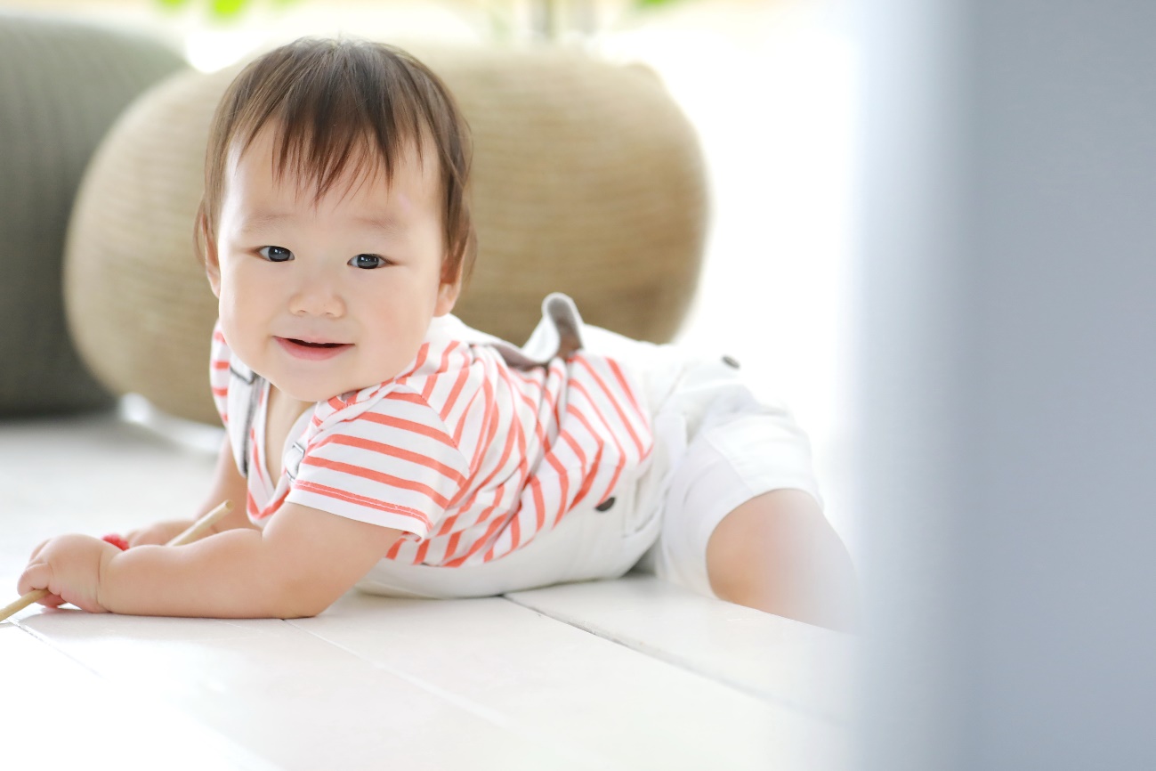 ↑1歳の弟くんは転んでも決して泣かない。立ち上がることもなく、そのままリラックスしはじめます。
