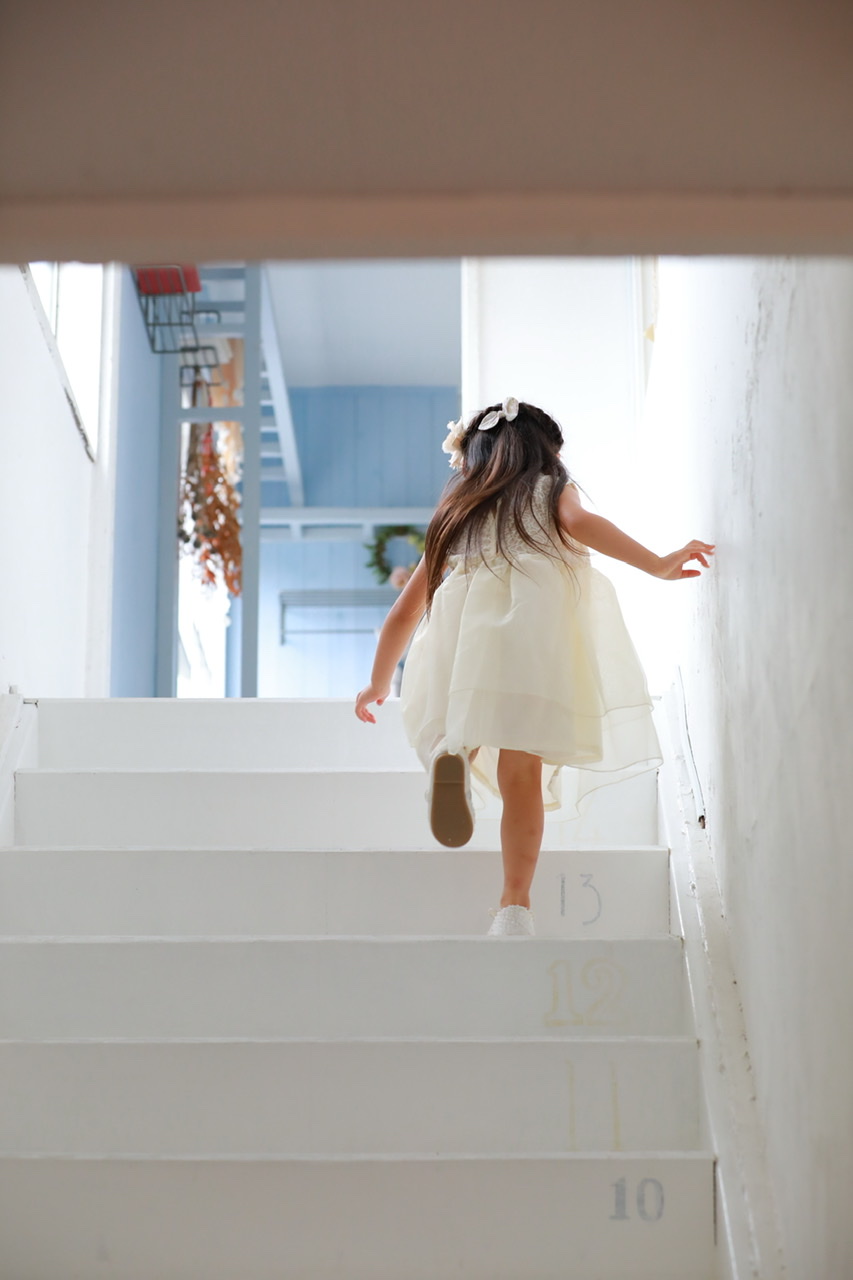 3歳の撮影ではきっと決して案内することのない階段での撮影。