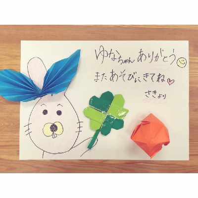 7歳の七五三撮影で遊びに来てくれた女の子からのプレゼント。 3つ上のお兄ちゃんと、パパ、ママ、おじ
