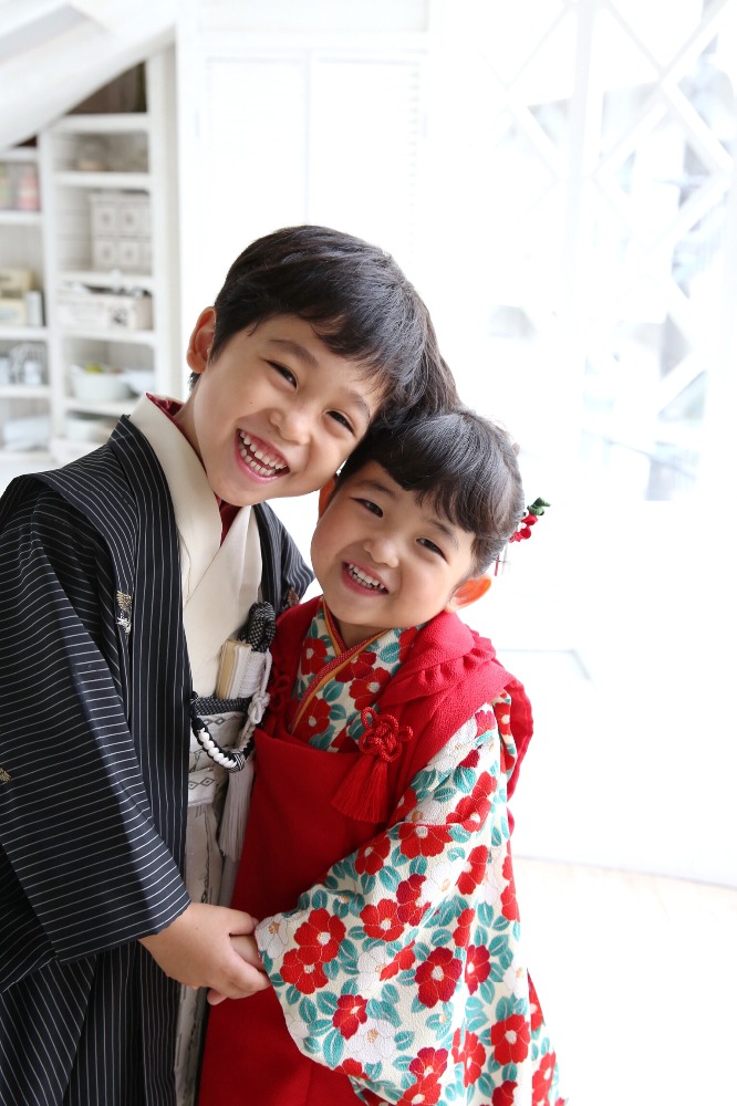 落ち着いた雰囲気の着物写真から、2人の笑顔が弾ける夏らしい兄妹の写真まで