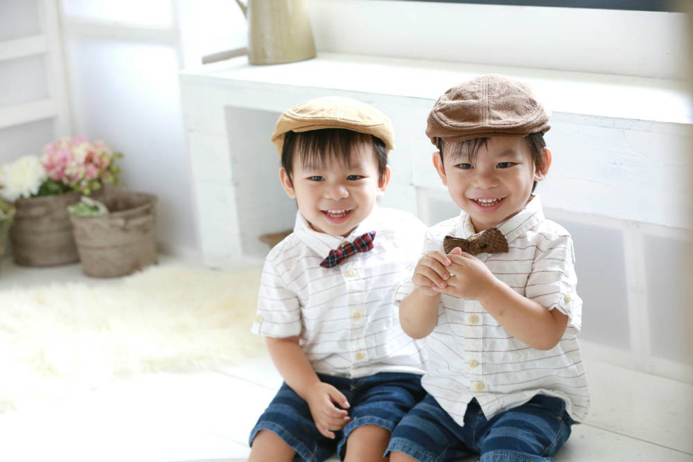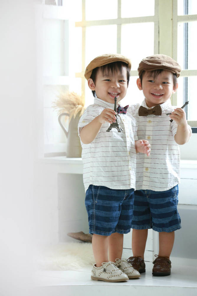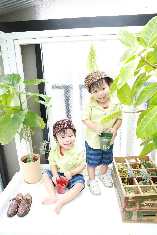 秀明君と俊幸君の二歳の記念写真を代々木スタジオで撮りました。台風8号が近づいていたので大変かなと思っていましたが、