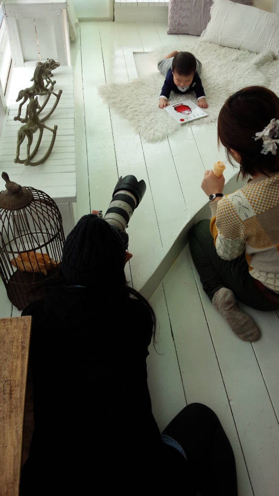 ボクはじめてのさつえいにキンチョーしてたくさんないちゃったけどおねーさんたちがいっしょうけんめいボクをわらわせてくれたから