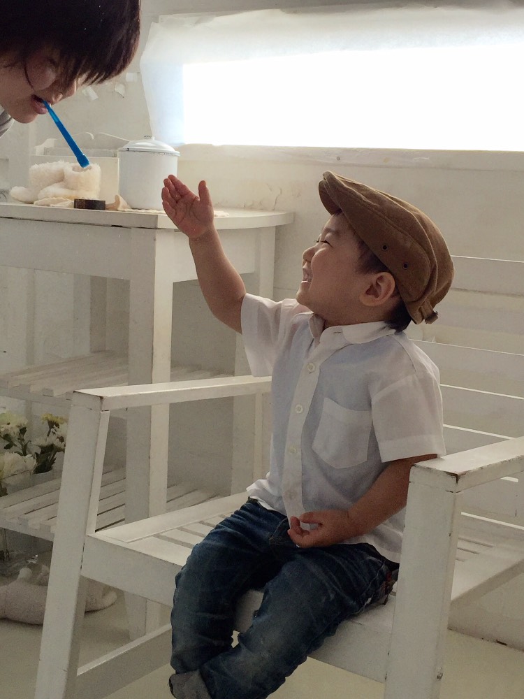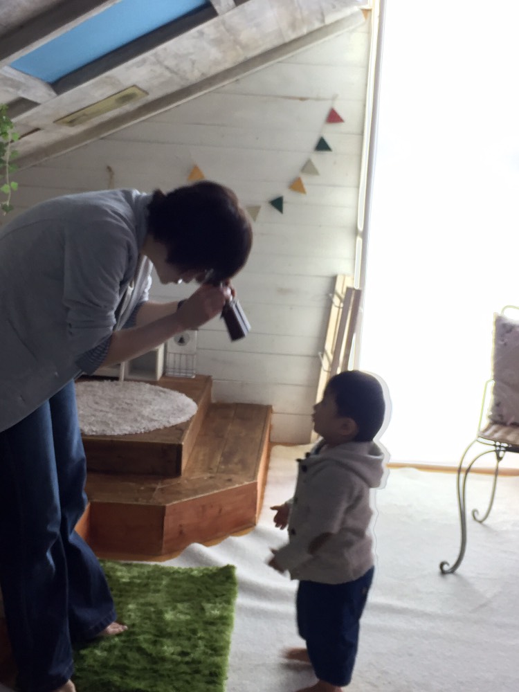 昼寝を起こされぐずる息子の友大に笑顔でやさしく接していただき気づくと柴田さんとすっかり打ち解け、大声で笑っている友大!(◎_◎;)