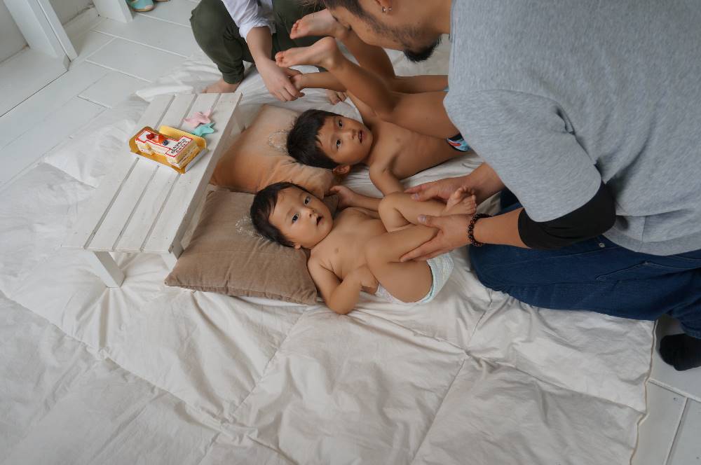 一升餅を背負ってひっくり返る次男とパンツ姿で走る長男の写真で大爆笑です。