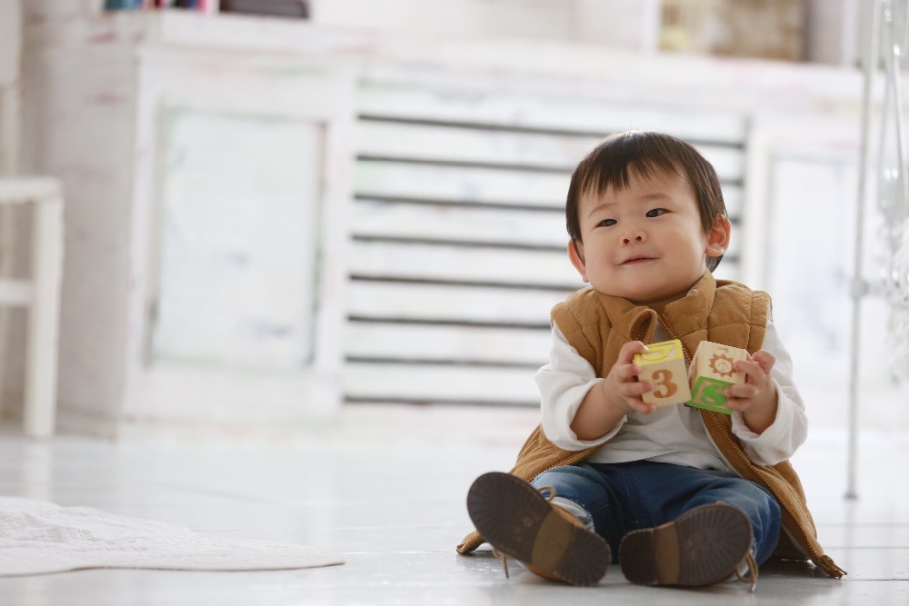 先日は1歳記念の撮影ありがとうございました!前回ハーフバースデーの時はあまり機嫌が良くなくてご迷惑おかけしましたが今回は機嫌もよく、ハイハイして動き回る息子の素敵な表情を撮っていただけました。自分では決して撮れない笑顔やちょっと悪そうな表情などどれも素敵でした。