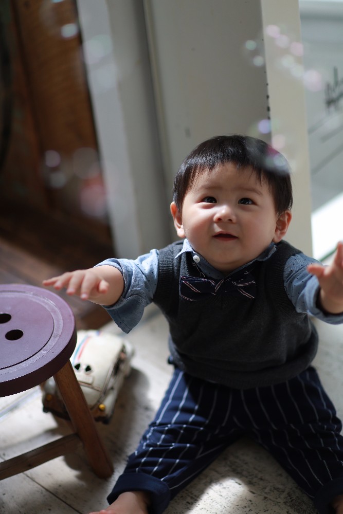 スタッフさんカメラマンさん達にいっぱいあやしていただいて、終始ご機嫌で撮影ができました。