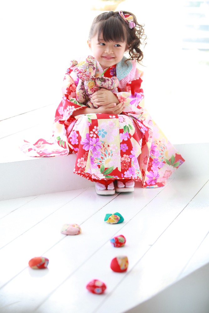 先日は七五三の撮影で湘南店へおじゃまさせていただきました。3歳の時と同じ構図で撮影をお願いしました。4年ぶりにクマちゃんのぬいぐるみとも再会(^^)