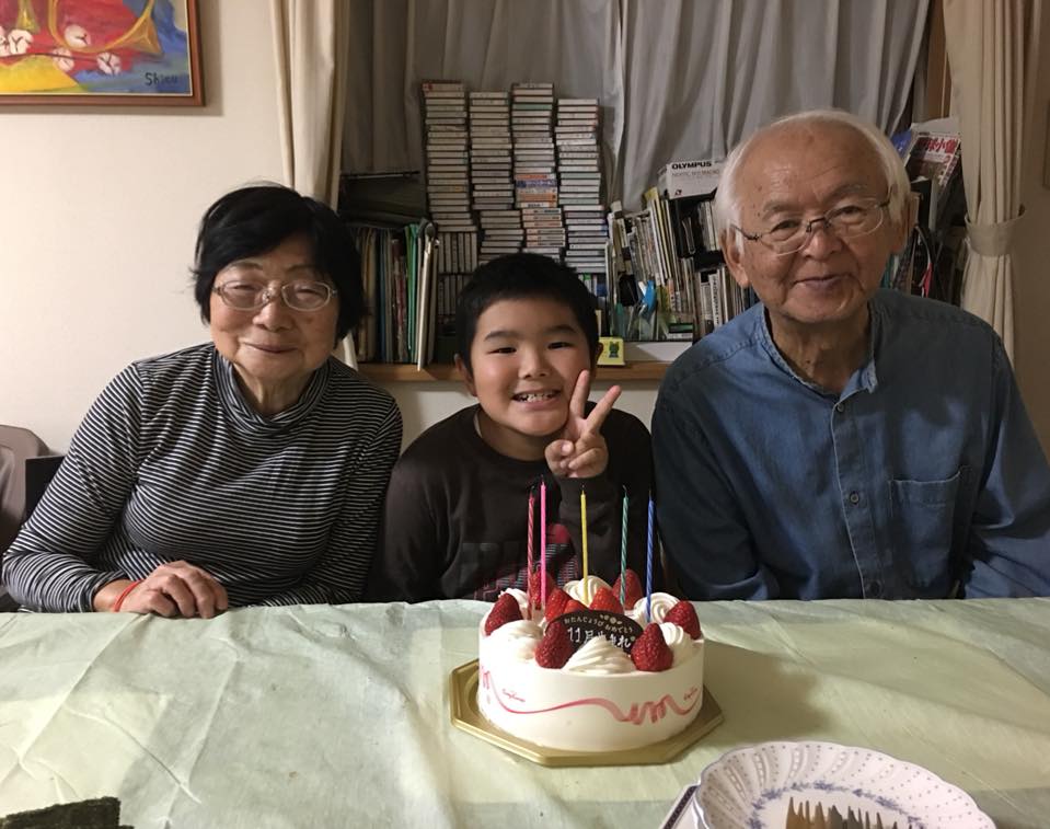 3枚目は去年の11月、88歳になった時です。(ハニー母86歳、小僧10歳とともに)