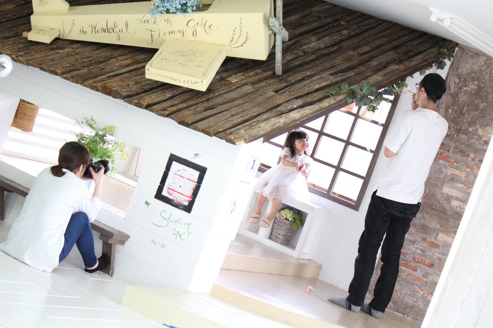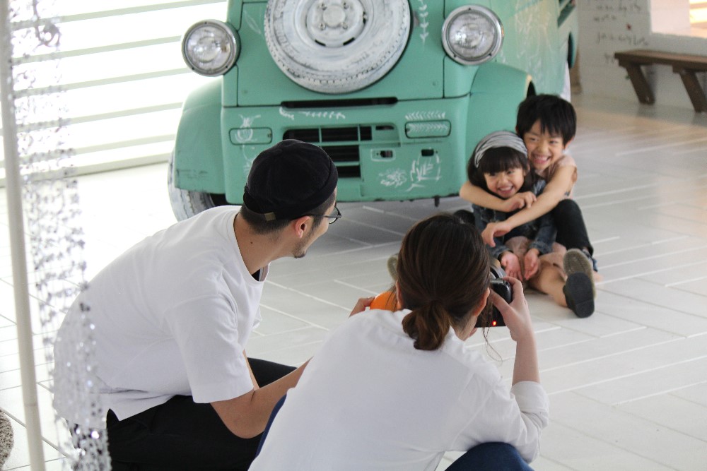 ママが遠くの方から撮っていた写真と一緒に撮った写真です★一生懸命ゴメラさんが準備してくださる風景や撮影風景、気に入っています!!いかがでしょうか?言うこときかないわがままお姫様とお兄ちゃんで、すみません・・・。あと、以前、みなさんと撮ったのもアップしようと思って、SDカードを探したのですが、見つからず・・・。見つかったらアップさせてください。