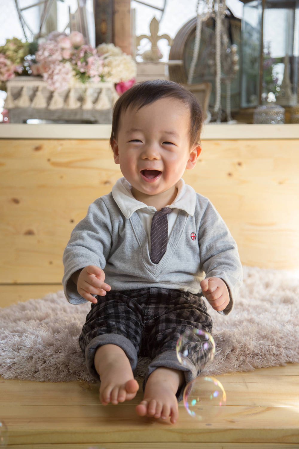 今回は1歳記念で素敵な写真を撮っていただきました。二回目の利用です。息子はとにかくスタッフさんたちと遊んでいるような感覚だったみたいで、最初から最後までずっと笑顔でした。