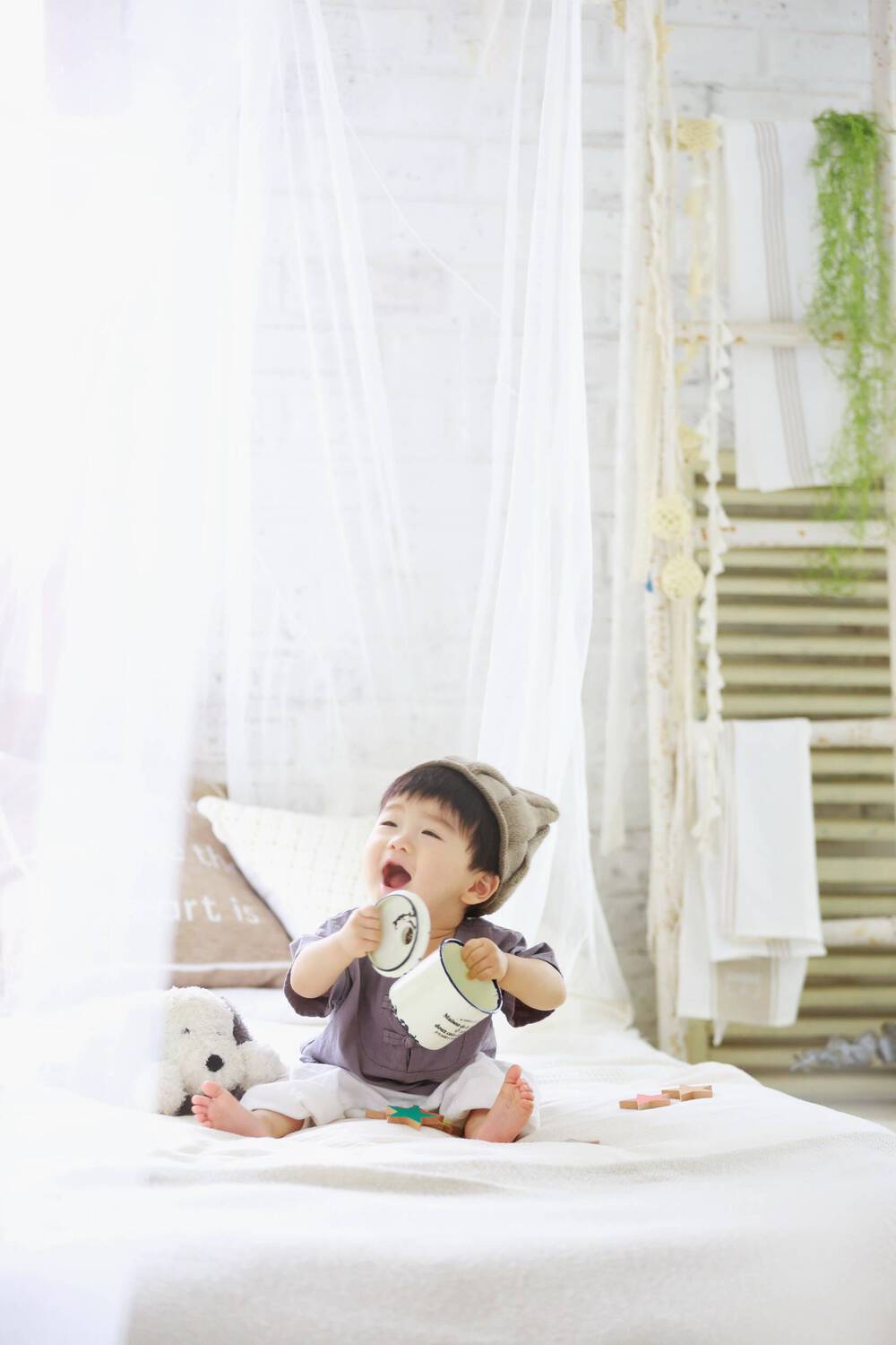 お姉さんとカメラマンさんにあやしてもらい子どもも楽しそうに笑顔を引き出してくれてかわいい写真がいっぱい撮れました!
