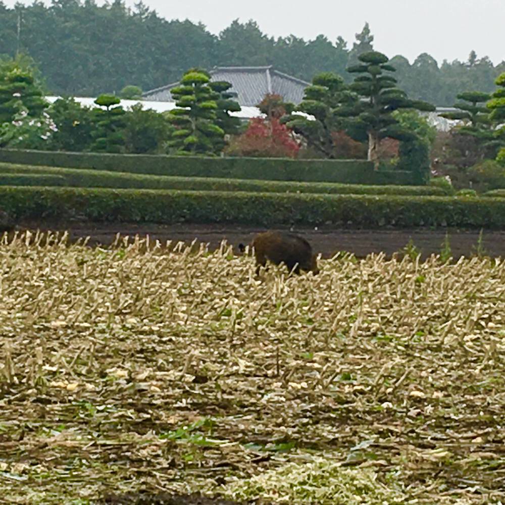 牧場近くの畑に牛が放牧されているのかと思ったら、かなりでかいイノシシも。